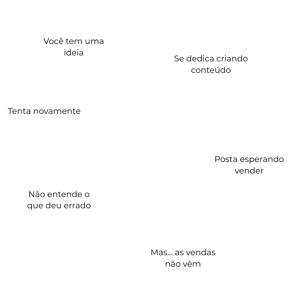 E enquanto você não tiver clareza de COMO usar o Instagram como uma vitrine de vendas, vai continuar vivendo o que eu chamo de “Ciclo da Frustração”: postar ➝ não vender ➝ desanimar ➝ tentar de novo ➝ nada muda.